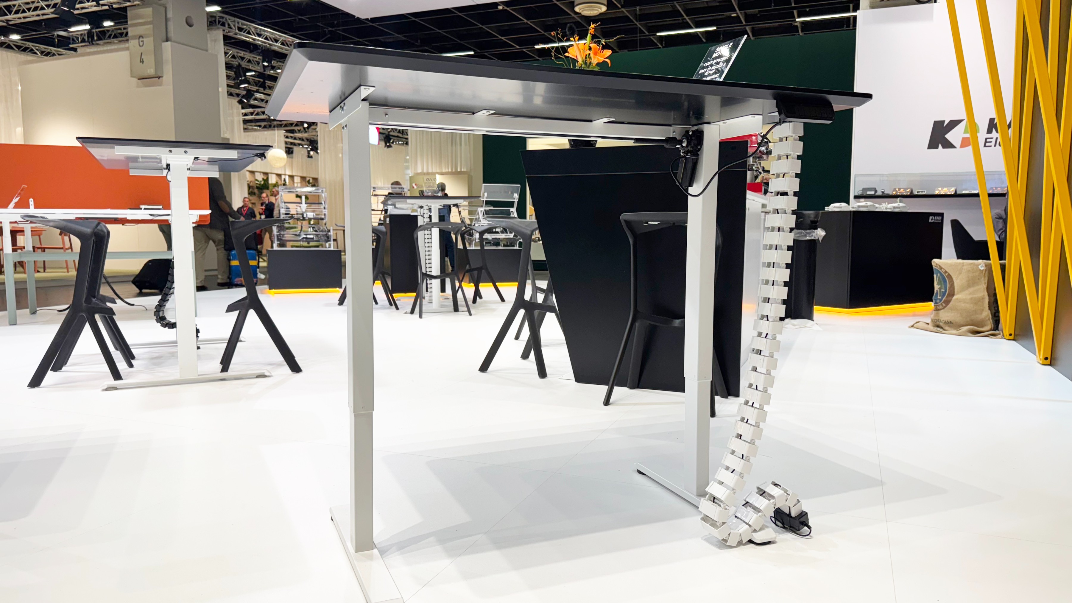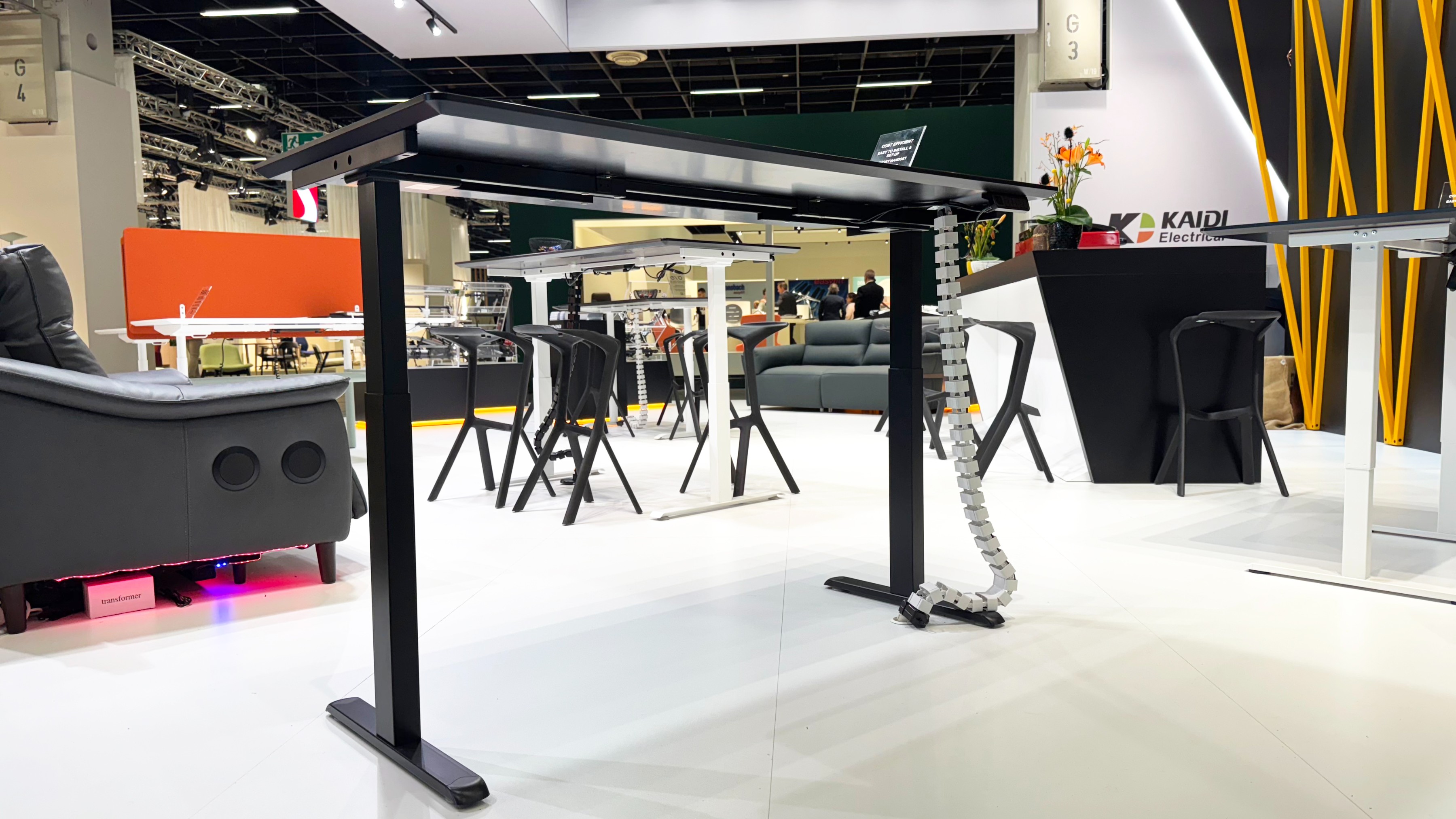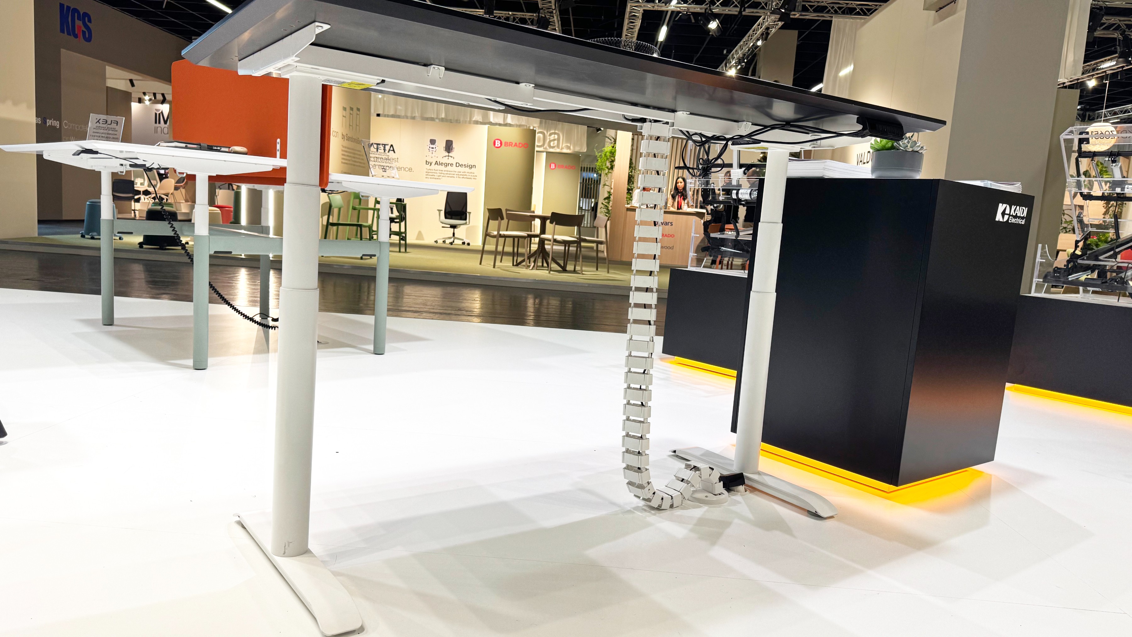在展会上,三款具备不同性能优势的智能升降桌吸引了众多来访观众的咨询。